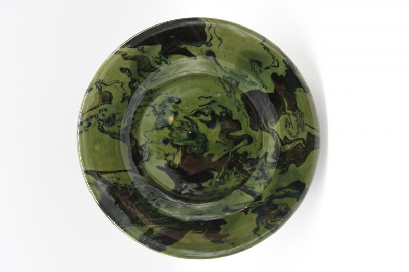 • Décor JaspéOffrez à votre table un décor rare et étonnant : le « jaspé » tient ses arabesques polychromique du mélange de différentes terres colorées (dites barbotines) qui donnent ce saisissant effet marbré, très contemporain. La technique est pourtant ancienne : issue du leg esthétique du XVIIe dans la vallée de l’Huveaune, très peu pratiquée en France, elle revit aujourd’hui dans l’atelier avec une maîtrise totale du déploiement décoratif.
