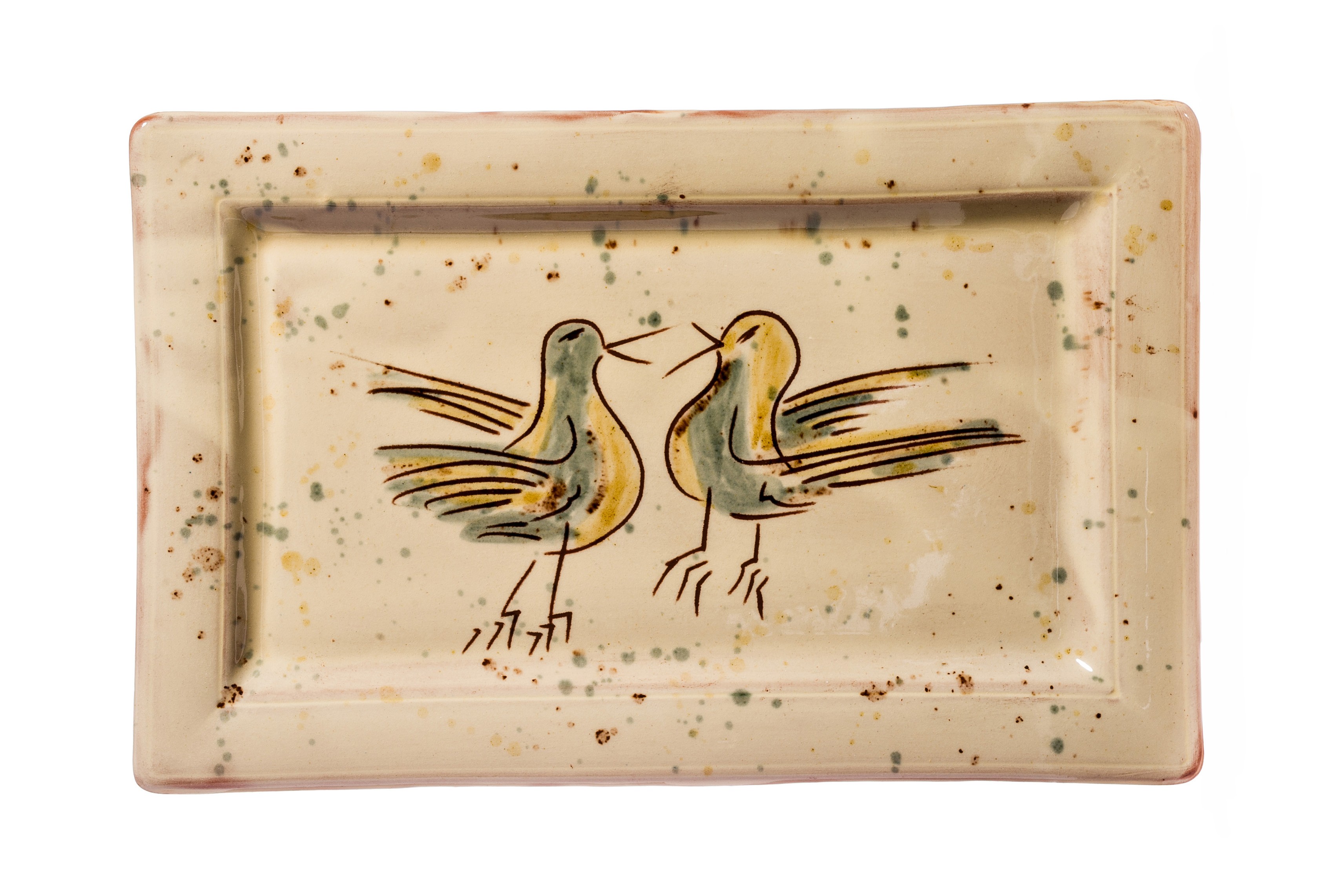 Offrez un plat de service composé de décors différents, ces assiettes serviront pour vos entrées, pour présenter vos préparations ou apéritifs. Le décor est réalisé à main levée, au clou, avec rehausse de vernis colorés.