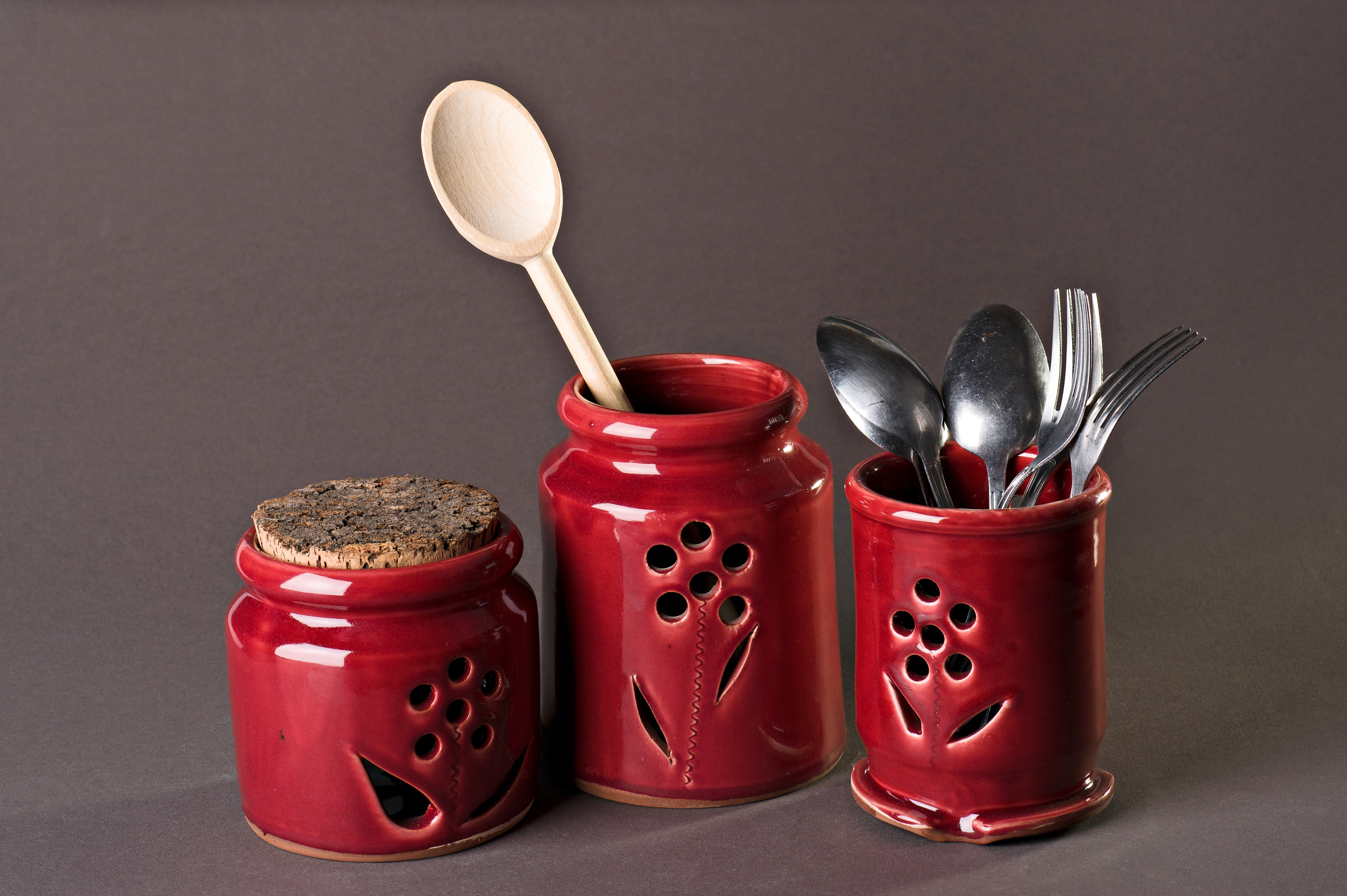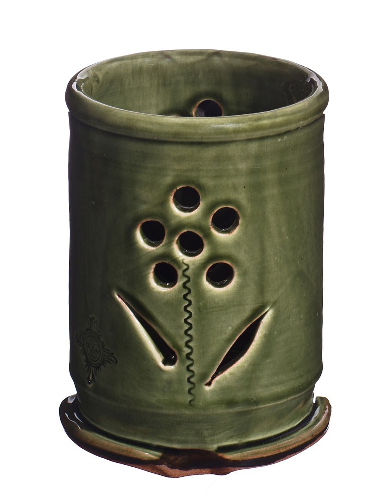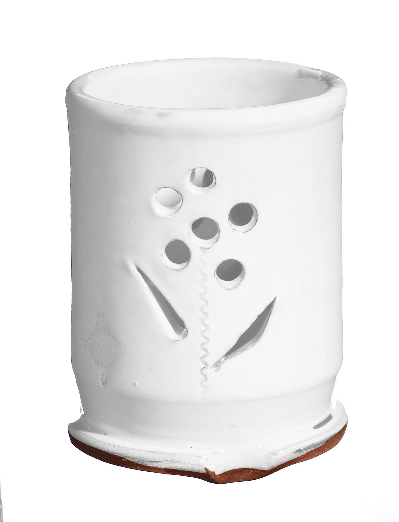 Décoratif et très utile sur votre évier, ce pot tourné main est percé au fond pour permettre un égouttage propre et sain d’un beau bouquet de fourchettes, cuillères, couteaux, ustensiles de cuisine et de service.