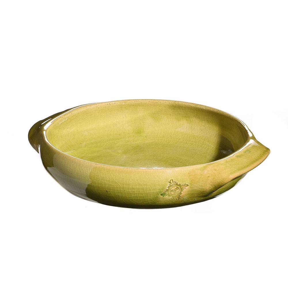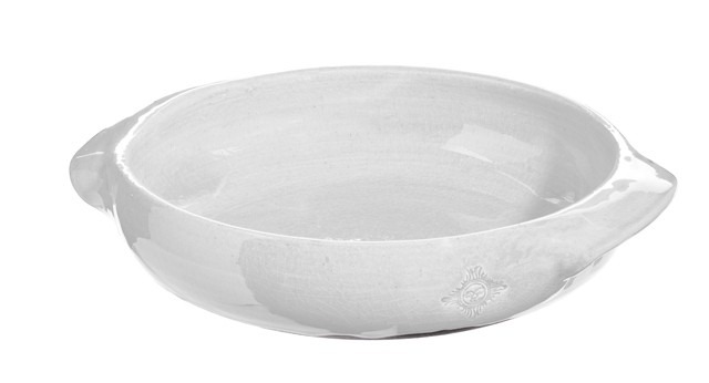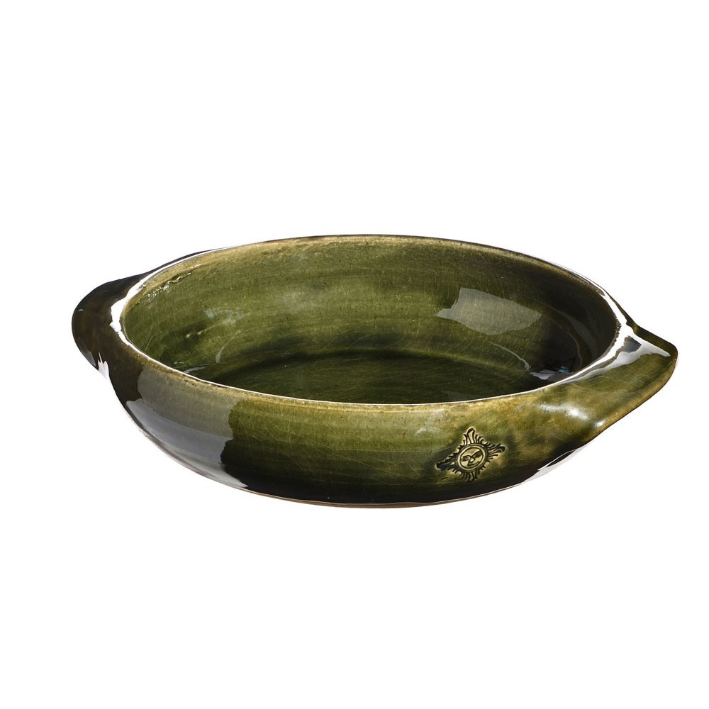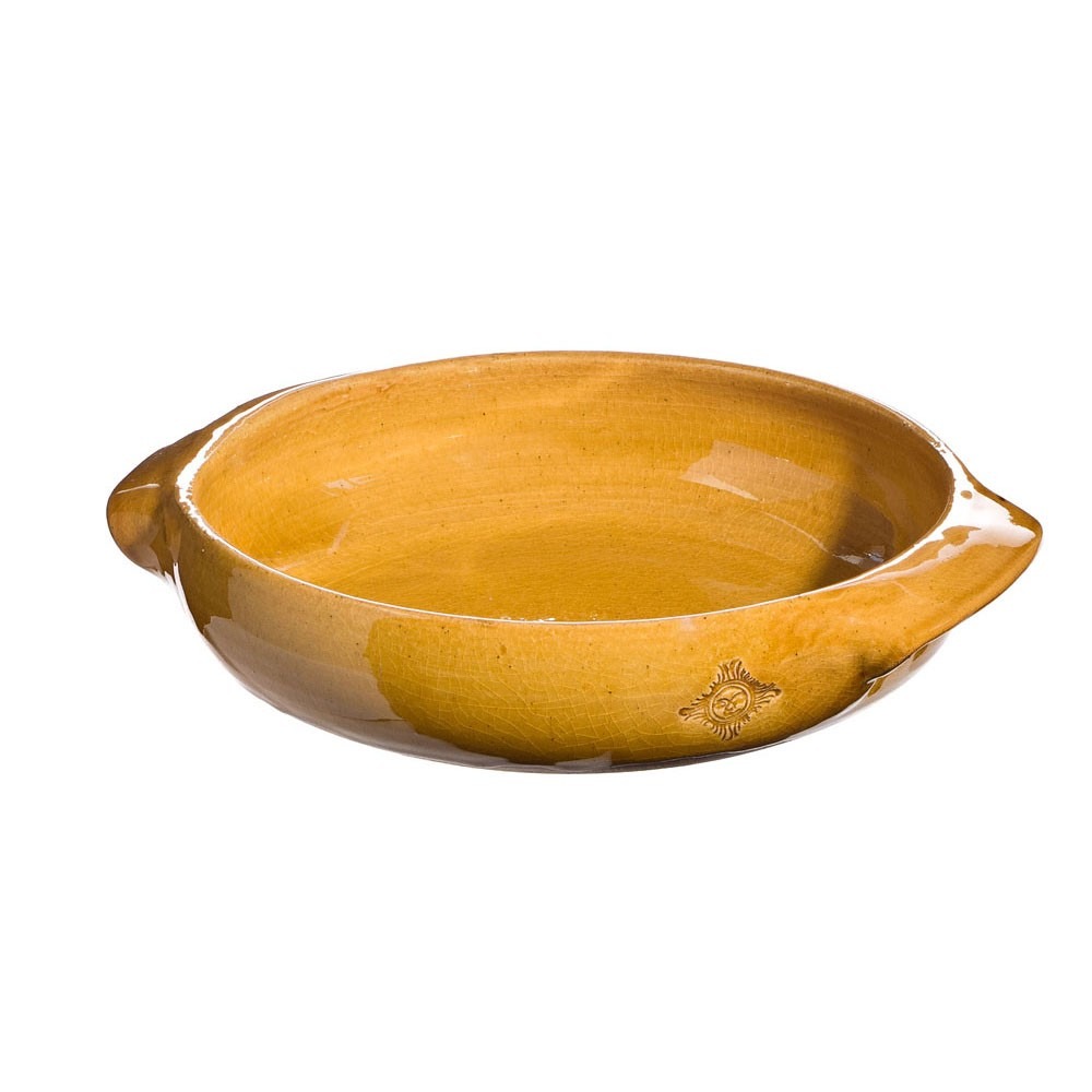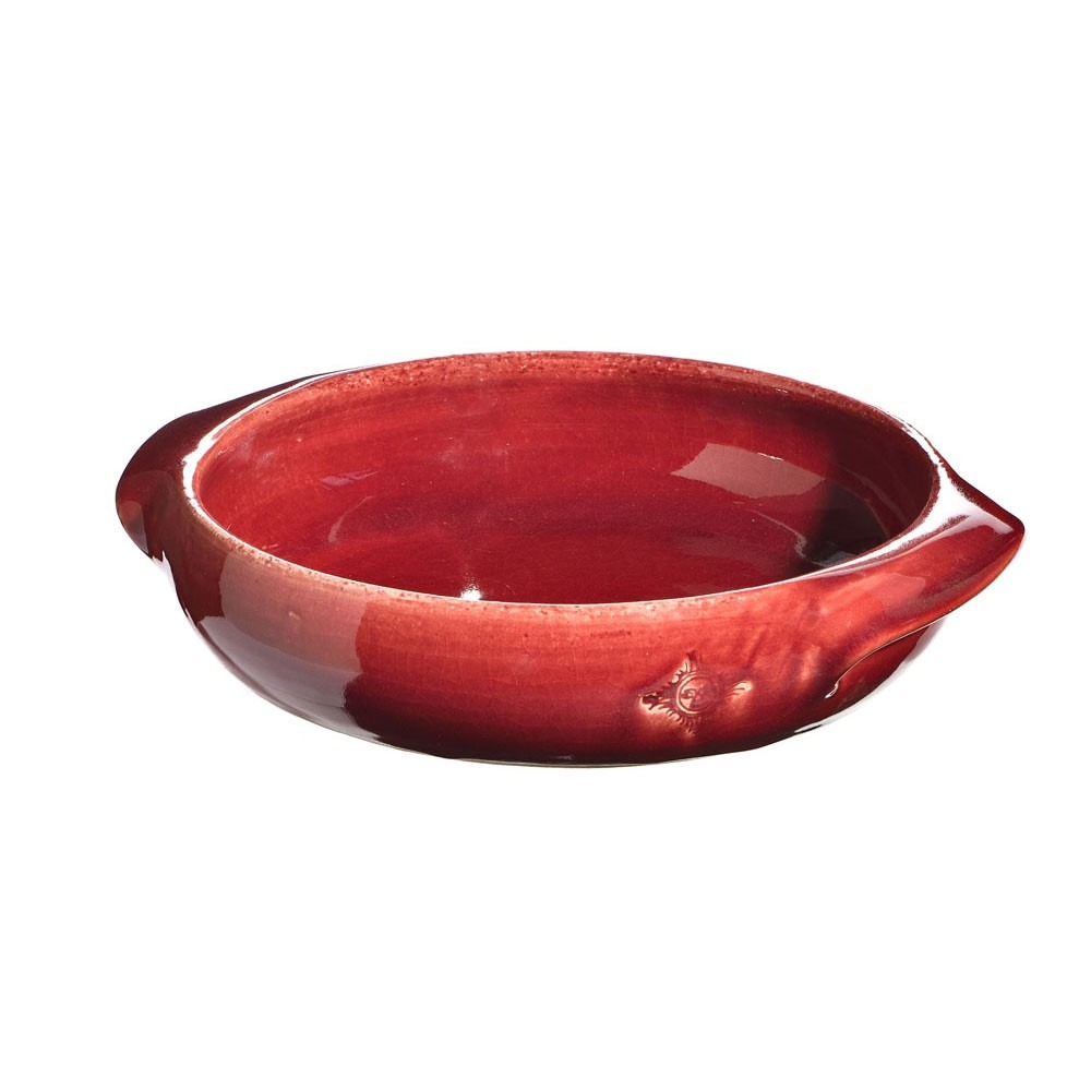 Le potier fabrique cinq tailles différentes de ce plat profond à bords fins pour mettre au four et réussir vos recettes de gratins dauphinois, gratins de pâtes, crumbles de légumes ou de fruits, parmentiers… Efficace en cuisine, pratique à manipuler avec ses deux anses, le plat à gratin rond en terre vernissée est aussi beau sur la table à l’heure des bons appétits.