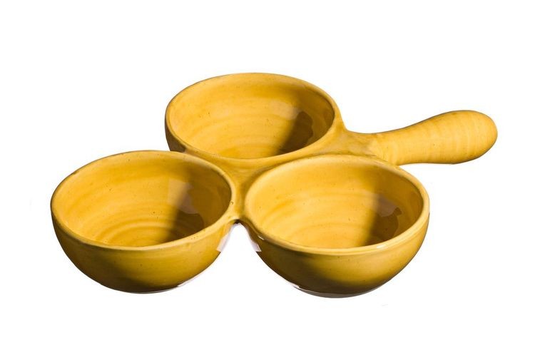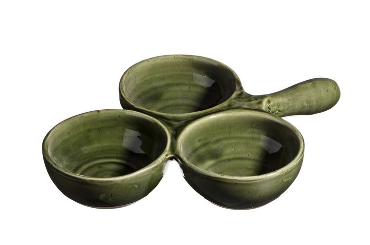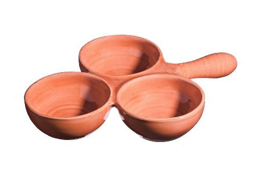 Le poumié ou poêlon à 3 pommes est fabriqué par le potier en argile réfractaire pour cuire les fruits au four, les mezzés, tians de légumes…
